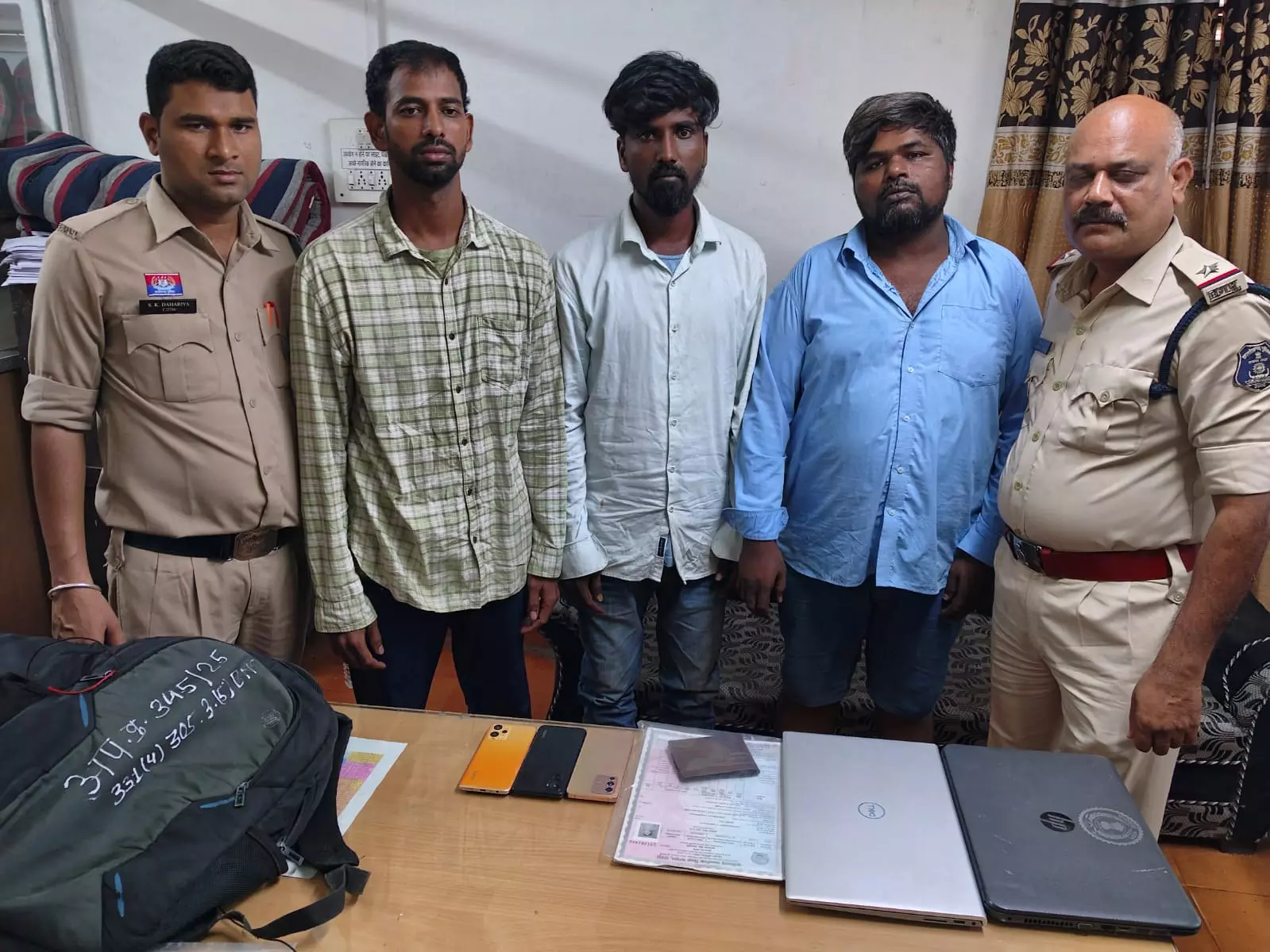 पुलिस ने उनके पास से 2 लैपटॉप, 3 मोबाइल फोन और दस्तावेज बरामद किए हैं, जिसकी कुल कीमत लगभग ₹1.5 लाख आंकी गई है।