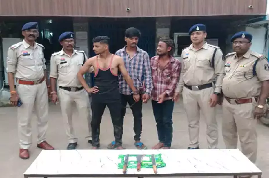दुर्ग। थाना सुपेला पुलिस ने बड़ी कार्रवाई करते हुए तीन युवकों को गिरफ्तार किया है, जो धारदार हथियार लहराकर लोगों को डराने-धमकाने का काम कर रहे थे। पुलिस ने तीनों के कब्जे से चाकू और चापड़ जैसे हथियार जब्त किए और आर्म्स एक्ट के तहत मामला दर्ज कर आरोपियों को न्यायिक रिमांड पर जेल भेज दिया।
