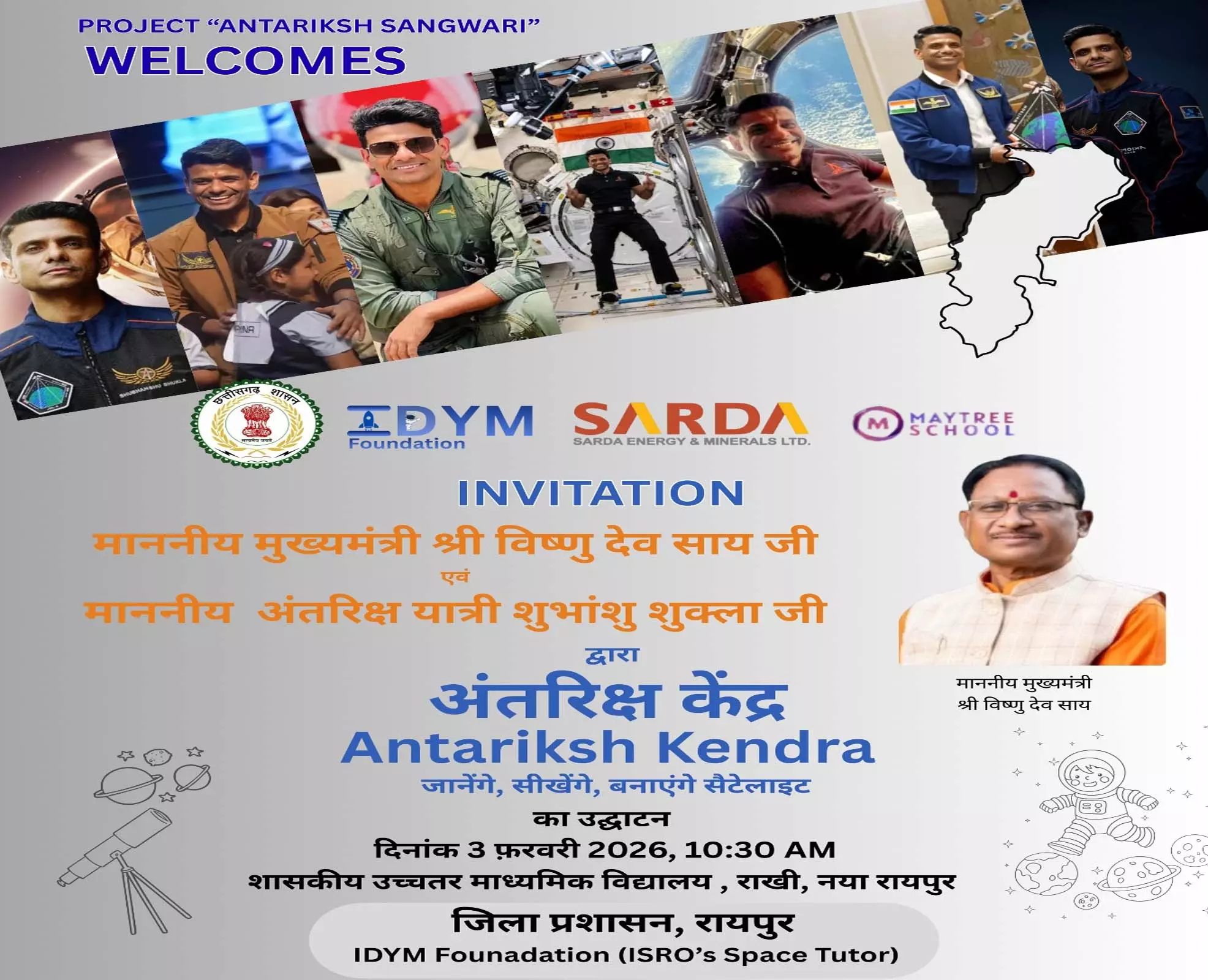 छत्तीसगढ़ : के शैक्षिक और वैज्ञानिक क्षेत्र में एक ऐतिहासिक पहल होने जा रही है। राज्य में पहली बार छत्तीसगढ़ अंतरिक्ष केंद्र की स्थापना के साथ अंतरिक्ष विज्ञान की नई शुरुआत होगी। जिला प्रशासन रायपुर और IDYM फाउंडेशन द्वारा, सारडा एनर्जी एंड मिनरल्स लिमिटेड के सहयोग से “प्रोजेक्ट अंतरिक्ष संगवारी” का शुभारंभ किया जा रहा है। इसके तहत नवा रायपुर में प्रदेश का पहला अत्याधुनिक अंतरिक्ष केंद्र स्थापित किया गया है, जिसका लोकार्पण 3 फरवरी को शासकीय उच्चतर माध्यमिक विद्यालय, राखी, नवा रायपुर में सुबह 10 बजे होगा। यह परियोजना…
