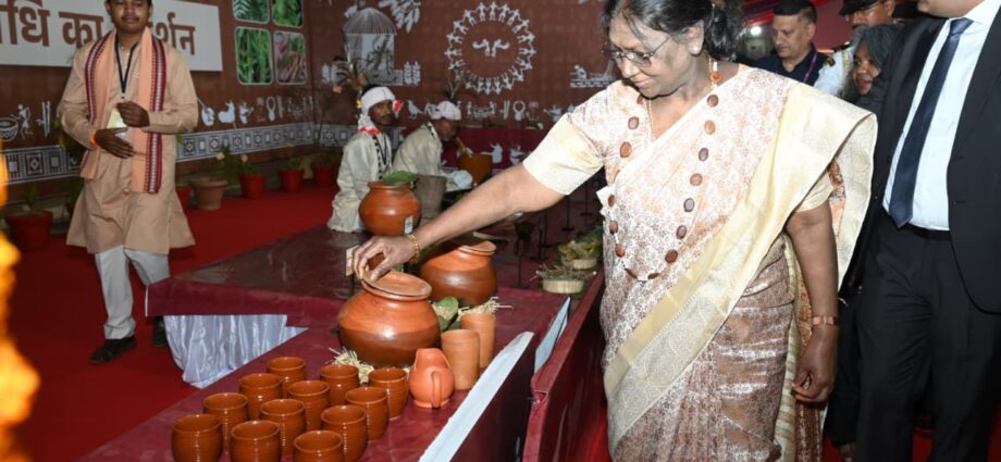 рд░рд╛рдпрдкреБрд░ : рдЬрдирдЬрд╛рддреАрдп рдкрд░рдВрдкрд░рд╛рдУрдВ рдФрд░ рд╕рдВрд╕реНрдХреГрддрд┐ рдкрд░ рдЖрдзрд╛рд░рд┐рдд рднрд╡реНрдп рдкреНрд░рджрд░реНрд╢рдиреА рдХрд╛ рд░рд╛рд╖реНрдЯреНрд░рдкрддрд┐ рджреНрд░реМрдкрджреА рдореБрд░реНрдореБ рдиреЗ рдХрд┐рдпрд╛ рдЕрд╡рд▓реЛрдХрди