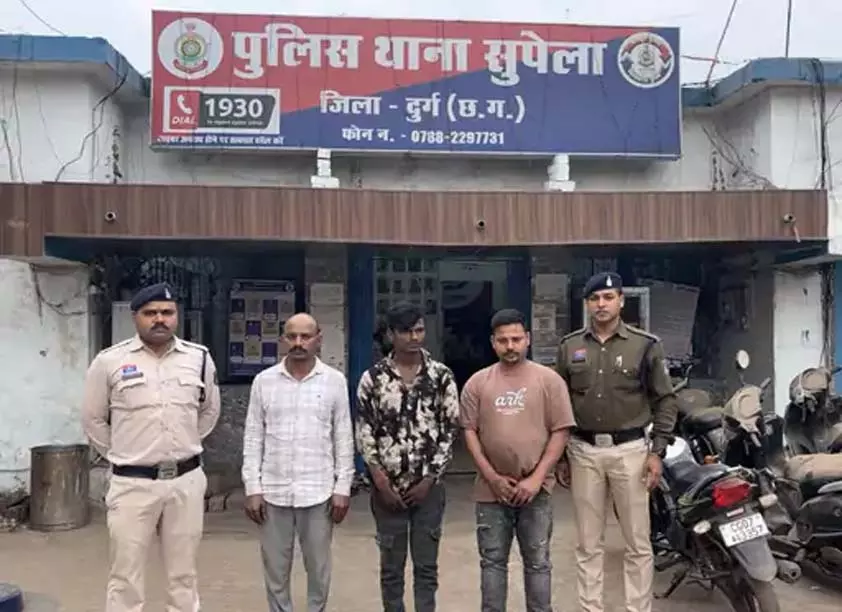 दुर्ग : में चल रही दुर्ग अवैध सट्टा कार्रवाई के तहत पुलिस को बड़ी सफलता मिली है। सुपेला थाना क्षेत्र के लक्ष्मी नगर स्थित मछली मार्केट में पुलिस ने दबिश देकर तीन आरोपियों को रंगे हाथ गिरफ्तार किया। आरोपी खुलेआम सट्टा-पट्टी लिखते हुए पकड़े गए। मौके से सट्टा संचालन से जुड़ी सामग्री, दो मोबाइल फोन और 5,790 रुपये नकद जब्त किए गए। पुलिस के अनुसार 21 फरवरी 2026 को मुखबिर से सूचना मिली थी कि कुछ लोग रुपये का दांव लगाकर अवैध सट्टा चला रहे हैं। सूचना मिलते ही सुपेला…