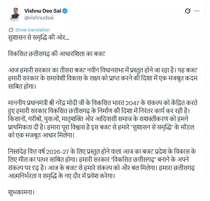 Read Moreमुख्यमंत्री साय ने 2026-27 बजट को विकास और समृद्धि का बताया मार्ग