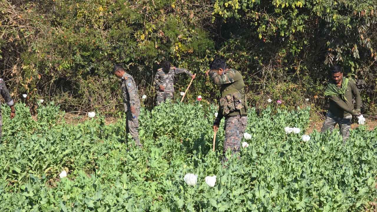 Ambikapur: छत्तीसगढ़ मध्य प्रदेश की सीमा में स्थित कुसमी जनपद पंचायत क्षेत्र की ग्राम पंचायत खजूरी के आश्रित गांव तुरीपानी में भी अफीम की खेती का बड़ा मामला सामने आया है. इससे 2 दिन पहले कुसमी जनपद क्षेत्र के ही त्रिपुरी गांव में भी साढ़े तीन एकड़ से अधिक क्षेत्र में अफीम की खेती का खुलासा हुआ था और प्रशासनिक टीम इसकी कार्रवाई में जुटी हुई थी. इसी बीच खजूरी पंचायत में भी अफीम की खेती का पता चला और उसके बाद देर शाम प्रशासन और पुलिस की टीम मौके…